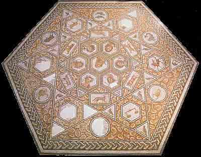 In an area of Hellenic influence the pattern surfaces as mosaic tiling in Sephoris (Zippora, Galilee). This Roman urban development, involving a theatre, stadium and Stoa, was the largest Roman building project of its time. It was under construction within a few miles of Nazareth during the time when the young Jesus would have been serving his apprenticeship. |